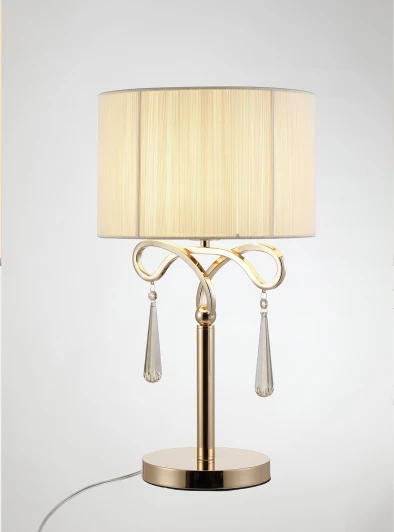 Настольная лампа из коллекции Chillly в классическом стиле. Абажур выполнен из плотной ткани, которая создает эффект рассеивания света. Корпус лампы выполнен из качественной стали и украшен кристаллами в форме капли, дополняющими изысканный дизайн. Настольная лампа имеет нежную цветовую гамму, которая подходит для спальни, гостиной и кабинета.