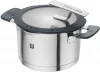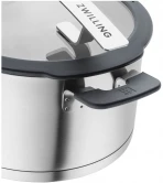 Кастрюля иаметр 16 см и объем 2 литра из линейки ZWILLING Simplify по-настоящему универсальна. Матовая нержавеющая сталь 18/10 в сочетании с серым мягким силиконом создает по-настоящему привлекательный акцент. Кастрюля имеет сэндвич-основу SIGMA Classic+, которая обеспечивает оптимальное распределение тепла. Силиконовая обшивка стеклянной крышки оснащена ситом двух размеров, поэтому жидкости можно слить быстро и без дополнительного дуршлага. Практичный держатель