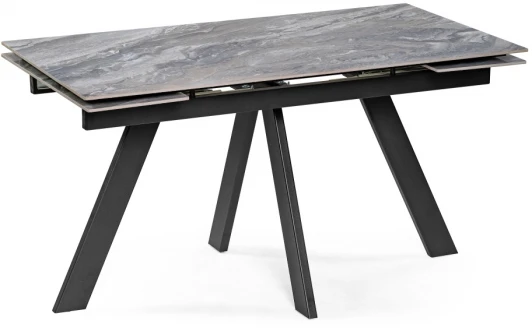 Расстояние между ножками: 70 см. Толщина столешницы: 1 см. Материал каркаса - Металл; Материал ножек - Металл; Материал столешницы - Керамика; Цвет каркаса - Черный; Цвет ножек - Черный; Цвет столешницы - Серый; Цвет подстолья - Черный; Ширина - 80; Высота - 76; Длина стола в разложенном виде - 200; Длина - 140;