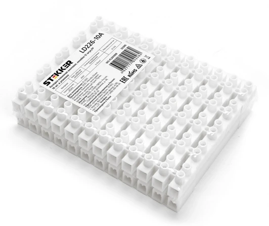 Клемма винтовая колодка STEKKER LD226-10A, 12-проводная 6- 10мм2, 450В, 10А, без пасты, материал изделия полипропилен, латунь, сталь. Тип провода одножильный/многожильный, материал провода латунь/медь, температура окружающей среды -25...+95°С