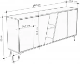 Наш стильный и функциональный сервант станет идеальным дополнением к любому дому. Благодаря его уникальному дизайну вы можете обновить свой интерьер и создать эффектную деталь в любой комнате. Этот сервант предлагает большое пространство для хранения с четырьмя шкафчиками и двумя открытыми отделениями. Прочные металлические ножки обеспечивают устойчивость и придают этому изделию нотку стиля. Гарантия - 2 года.