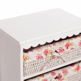 Одновременно компактный и вместительный комод Secret De Maison LE RAY из коллекции SAINT-TROPEZ станет прекрасным местом для хранения различных вещей. Комод будет хорошо смотреться в гостиной, спальне, коридоре, ванной. Две плетеные корзины из бумажного жгута и вместительное отделение с дверцами помогут организовать порядок в любой части квартиры. Сочетание прочного каркаса из массива павловнии, покрашенного в белый цвет, корзин из бумажного жгута и съемных тканевых чехлов с нежным цветочным принтом не оставит никого равнодушным. Натуральная древесина павловнии обладает хорошими водоотталкивающими свойствами, благодаря чему изделие долговечно, надежно и не требует специального ухода. Модель отлично сочетается с мебелью из коллекции SAINT-TROPEZ, поставляется в собранном виде. Страна-производитель: Китай