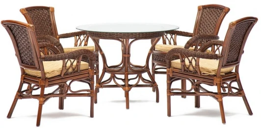7832 Комплект обеденный "ANDREA" (стол со стеклом + 4 кресла подушки) Pecan Washed (античн. орех), Ткань рубчик, цвет кремовый Tetchair ANDREA 7832