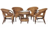 12003 Комплект обеденный "Mandalino" 05/21 ( 4 кресла + стол обеденный ) /без подушек/ walnut (грецкий орех), плетение-банановые листья (ротанг)