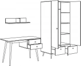 В нижней части шкафа расположены два ящика. Дно ящиков из ДВПО. <br>Над ящиками за двумя распашными дверями находятся два отделения:<br>- в правом три съёмные полки, перестановки по высоте не предусмотрено<br>- в левом полка для головных уборов и продольная штанга для плечиков<br>Изготовлен из ЛДСП 16 мм., в декоре Белый гладкий. Кромочный материал в толщине 0,4 мм. Укомплектован опорами из натурального дерева, изготовленными из древесины бука и покрытыми прозрачным лаком. Высота опоры вместе с фланцем 160 мм. Регулировки по высоте нет.<br>Полка представляет собой горизонтальный щит с задней стенкой и вертикальной перегородкой. Полка имеет навески для крепления к стене. Изготовлена из ЛДСП толщиной 16 мм., кромочный материал толщиной 0,4 мм. <br>Корпус изготовлен из ЛДСП белого цвета, гладкий, кромка белая. В комплект входят фасады для ящиков так же белого цвета и две ручки, цвет натуральное дерево. Подстолье и ножки изготовлены из древесины бука и покрыты прозрачным лаком.