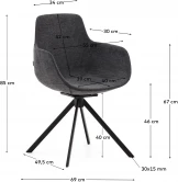 175092 Поворотное рабочее кресло Tissiana из темно-серой синели и черного матового алюминия La Forma (ex Julia Grup) арт.175092
