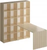 Play — коллекция модульной мебели для детской в спокойных оттенках светлого дерева с локальным добавлением ярких элементов. Естественные формы и цвета подружатся с любой стилевой темой. Подойдет как для дошкольников, так и для подростков. Изделия отвечают главным критериям детской мебели: безопасны, устойчивы, надёжны и эстетичны. Соблюдены экологические показатели, использована ЛДСП класса эмиссии Е1 и Е0,5 — для детской мебели с герметично закрытыми кромками. Из большого количества модулей вы можете спроектировать индивидуальное решение, исходя из потребностей и площади помещения. <br>Для игровой локации, учебного места, спальной зоны, гардероба, хранения игрушек, техники и предметов для творчества — используйте модульные шкафы, стеллажи, тумбы, кровати-чердаки, столы, стеллажи-лестницы. Сквозные стеллажи идеальны в качестве перегородок в детской. Они пропускают свет, не перегружают площадь, позволяют использовать разные декоративные приёмы. Двухярусные кровати и «чердаки» удобно использовать в компактной локации. Шкафы напольные, навесные, тумбы, лаконичные столы — мебель Play поддержит атмосферу порядка и идеальный настрой на учёбу, творчество, поможет развить самостоятельность и аккуратность. Белые фасады отражают свет, освежают интерьер. С коллекцией Play вы легко создадите организованное и креативное пространство, в котором у каждой вещи есть своё место, и где ребенку комфортно учиться, играть, отдыхать, творить. <br>Многофункциональная композиция для детской, молодежной и рабочего места.<br><br>Ручки в стоимость изделия не включены, приобретаются отдельно.