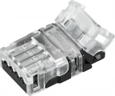 Одиночный коннектор (без провода) для подключения питания к открытым IP20 светодиодным одноцветным лентам шириной 10 мм с высокой плотностью светодиодов. Материал - прозрачный пластик. Обеспечивает соединение без видимых разрывов. Максимальный допустимый ток 3 А, напряжение 3-24 В.