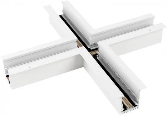 Крестовой прямой коннектор MAG-CON-4560-F-X90 (WH) для встраиваемого трека MAG-TRACK-4560-F. Напряжение питания 24 В.