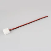 Одиночный пластиковый коннектор с проводом 15 см для подключения питания к герметичным одноцветным светодиодным лентам шириной 10 мм. Максимальный допустимый ток 3 А, напряжение до 50 В.