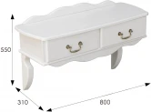 Подходит в классический интерьер прихожей, гостиной, спальни, будуара в светлых тонах Элегантная конструкция, удобные ящики, крепление к стене В сочетании с банкеткой и зеркалом из серии "Берже" создаст приватный женский туалетный уголок; отлично смотрится как подставка под вазу с цветами, статуэтку, или небольшое комнатное растение в сочетании с зеркалом; Все поверхности из натурального дуба, качественное лаковое покрытие Легко собирается, надежная упаковка защищает при транспортировке Предметы серии "Берже" отлично сочетаются друг с другом, составляя набор мебели в классическом стиле.___ Стол консольного типа удобен тогда, когда вы точно определили его место в интерьере и не собираетесь его перемещать. Часто консоль используется для размещения над ней зеркала, либо картины. Консоль - достаточно компактный предмет интерьера. Несмотря на это, консоль может быть дополнена ящиком для хранения мелочей, либо косметики. Туалетный столик часто устанавливают в спальню. Если пространство весьма ограничено, то консольный столик можно использовать и как письменный, гримерный или маникюрный стол. Письменные столы практически всегда шире консольных. В нашем ассортименте вы сможете подобрать, понравившуюся вам мебель, как по габаритам, по дизайну, так и по цветам отделки. У нас есть как прямые консоли, так и угловые. МАТЕРИАЛЫ: мдф, шпон дуба УПАКОВКА: 40х86х19 см., 1место ВЕС: 16 кг 27 см консоль с декор.элементами, 28 см ноги Цвет: белый ясень