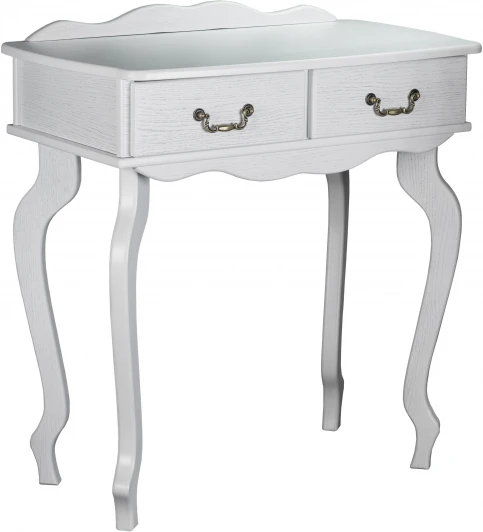 Дамский столик из серии «Берже» будет не только полезным, но и притягательным элементом мебели в вашем доме. Он прекрасно дополнит практически любой интерьер гостиной, спальни, будуара. Компактный размер (ШВГ 80х86х46) позволяет использовать предмет даже в качестве консоли в прихожую. Столешница с ящиками представляет из себя утончённую конструкцию на изящно изогнутых ножках. Приобретая данную модель для квартиры или дома, вы делаете выбор, прежде всего, в пользу практичности и долговременного пользования. Об этом говорит и качество выполнения, и дизайн туалетного стола. Мебель в классическом стиле, без сомнений, будет актуальна во все времена. Именно поэтому вы можете с уверенностью отсеять все переживания о том, что часть интерьера с годами устареет. Если вы будете соблюдать условия эксплуатации, мы гарантируем, что столик прослужит не менее 10 лет со дня покупки. Два ящика, расположенных под столешницей, станут удобным местом для хранения косметических средств, предметов личной гигиены, украшений и различных аксессуаров. На поверхности столика можно будет разместить органайзеры, шкатулки, а также другие предметы декора. Выбор элементов для украшения столешницы зависит от ваших фантазии и вкуса. Макияжный столик с зеркалом и банкеткой из серии «Берже» благодаря тщательно продуманной идее дизайнера превосходно сочетаются между собой. Данная композиция даже в скромном по размеру помещении создаст полноценное личное пространство для представительницы прекрасного пола. Оно станет местом повседневного пользования с довольно широким функционалом. В случае необходимости вы можете задвинуть под столик банкетку из этой же серии. Безусловно, гримёрный столик – это в первую очередь место, где удобно привести себя в порядок. Его наличие также избавит вас от ежедневной траты времени и сил на поиск предметов для ухода за собой по всему жилищу, ведь теперь они будут собраны в специально отведённой зоне. Таким образом, вы избавитесь от визуального шума в жилом помещении. Важно отметить, что размеры представленной модели позволяют использовать столик и для письма, и для выполнения маникюра. За ним вы можете расположиться и с чашечкой любимого напитка, читая свежую прессу или литературное произведение. Туалетный стол всегда был одной из ключевых вещей любой хозяйки. Не отказывайте себе в удобстве и комфорте! Наш ассортимент представляет широкий выбор моделей различных габаритов и оттенков. Вы можете выбрать как прямую консоль, так и угловую. В наличии имеются и подвесные модели. Подходит в классический интерьер прихожей, гостиной, спальни, будуара. Элегантная конструкция, удобные ящики. В сочетании с банкеткой и зеркалом из серии "Берже" создаст приватный женский туалетный уголок; отлично смотрится как подставка под большую вазу с цветами, статуэтку, или комнатное растение в сочетании с зеркалом; Легко собирается, надежная упаковка защищает при транспортировке. Предметы серии "Берже" отлично сочетаются друг с другом, составляя набор мебели в классическом стиле. МАТЕРИАЛЫ: мдф, шпон дуба УПАКОВКА: 85х61х18 см., 1 место ВЕС: 22 кг Цвет: белый ясень