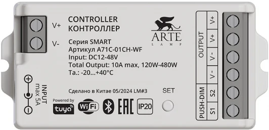 Контроллер Smart A71C-01CH-WF от итальянского бренда Arte Lamp изготовлен из пластика. Питание от сети 48 В. Степень защиты от влаги и пыли IP20. Габариты: длина 75 мм, ширина 36 мм, высота 17 мм. Дополнительные функции: Tuya Smart, WiFi. Заказывайте Arte Lamp A71C-01CH-WF онлайн по низкой цене с гибкими условиями доставки на Fedomo.ru!