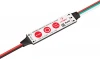 Миниатюрный контроллер для мультибелой (MIX) светодиодной ленты (ШИМ). Питание/рабочее напряжение 12-24VDC, максимальный ток 2A на канал, 2 канала, максимальная мощность 48-96W. Габариты 60x12.5x5 мм. Управление кнопками на корпусе диммера.