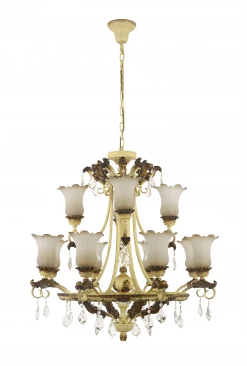 Люстра подвесная большая каскадная кованая Gradara E 1.1.12.200 CA из серии Gradara от компании Dio D'Arte устанавливается на металлический крюк. Классическая люстра украшена хрусталем Asfour и прекрасно подойдет в качестве источника основного света для гостиной, прихожей и коридора, кафе, холла, оформленных в стиле арт-деко, прованс. Основной цвет модели - латунь, материал арматуры - металл. Люстра имеет 12 плафонов со свечением вверх, материал изготовления - матовое стекло. Модель оснащена цоколем E27 (12xE27), имеет 12 лампочек с общей мощностью 720W и напряжением 220V. Светильник поддерживает подключение диммера. Габариты: высота - 900 мм, диаметр - 900 мм. Лампочки в комплект не входят. Лучшая цена и условия доставки на Dio D'Arte Gradara E 1.1.12.200 CA в интернет-магазине Fedomo.ru.