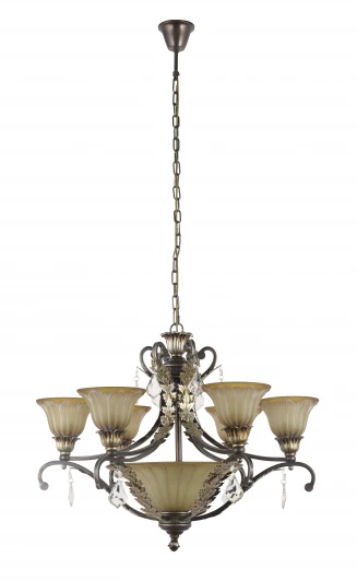Люстра подвесная кованая Ragusa E 1.13.6 B из серии Ragusa от компании Dio D'Arte устанавливается на металлический крюк. Классическая люстра прекрасно подойдет в качестве источника основного света для гостиной, кафе, холла. Основной цвет модели - коричневый, материал арматуры - металл. Люстра имеет 6 плафонов со свечением вверх, материал изготовления - матовое стекло. Модель оснащена цоколем E27 (9xE27), имеет 9 лампочек с общей мощностью 540W и напряжением 220V. Светильник поддерживает подключение диммера. Габариты: высота - 700 мм, диаметр - 870 мм. Лампочки в комплект не входят. Лучшая цена и условия доставки на Dio D'Arte Ragusa E 1.13.6 B в интернет-магазине Fedomo.ru.