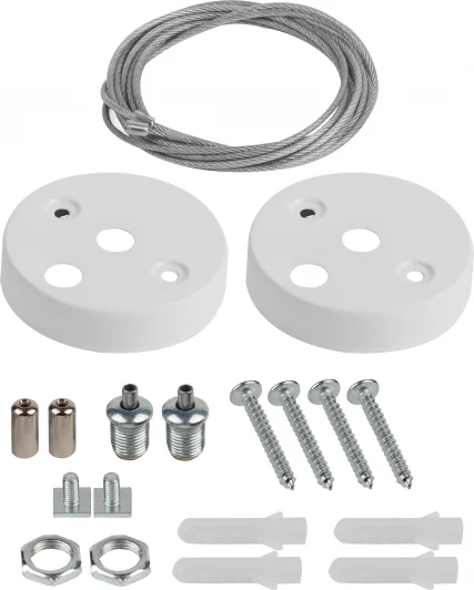Комплект креплений для магистральныхсветильников ЭРА SML. В крепёжный набор входят 2 комплекта креплений - для накладного и подвесного монтажа. Длину троса при подвесном монтаже можно регулировать (максимальная длина подвеса светильника - 1 метр). ЭРА SML - магистральные светодиодные светильники с возможностью креативного соединения. Позволяют реализовать смелые дизайнерские задачи в рамках светового оформления. На потолке и стенах можно создавать креативный LED-рисунок - квадраты, буквы, пчелиные соты, кристаллические решеткии многое другое. Соединяются в линию или под углом (с раздельным питанием). Выпускаются в двух цветах корпуса - чёрном и белом. В комплекте с каждым светильником - крепёж для удобного и быстрого монтажа, а также детали для последовательного соединения. Для создания уникальных LED-рисунков отдельно приобретаются светодиодные модули - треугольные или квадратные.