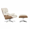 Кресло Eames Style Lounge Chair Ottoman Premium белая кожа/Орех