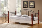 Кровать-софа односпальная. Материал: ножки - гевея, основание, спинка - металл. Усиленная база. Цвет: металла - чёрный, дерево - красный дуб. Размеры: 90х200 см Страна-производитель: Малайзия
