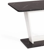Визуально легкий стол-транформер FOX украсит собой любую домашнюю обстановку. Большая столешница, оригинальная ножка-опора и удачное сочетание белого цвета и черного. Мрамор – идеальное решение для современного стильного интерьера. Размеры стола дают возможность с комфортом разместить от четырех до шести человек. Вставка стола убирается горизонтально в подстолье. Края оклеены прочной пластиковой кромкой толщиной 2 мм. ЛДСП толщиной 25 мм. Механизм раздвижения - синхронного типа со стопором. Стол FOX отлично подойдёт для гостиной, для кухни или для загородного дома. Модель очень проста в сборке, инструкция прилагается. Стол упакован в гофрокороб, в одну упаковку. Страна-производитель: РОССИЯ
