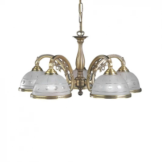 Люстра подвесная L 3830/5 из серии 3830 от компании Reccagni Angelo устанавливается на металлический крюк. Классическая люстра прекрасно подойдет в качестве источника основного света для гостиной, прихожей и коридора, кафе, кабинета, оформленных в стиле ампир. Основной цвет модели - белый, материал арматуры - металл. Люстра имеет 5 плафонов со свечением вниз, материал изготовления - стекло. Модель оснащена цоколем E27 (5xE27), имеет 5 лампочек с общей мощностью 300W и напряжением 220V. Светильник поддерживает подключение диммера. Габариты: длина - 600 мм, высота - 340 мм. Лампочки в комплект не входят. Лучшая цена и условия доставки на Reccagni Angelo L 3830/5 в интернет-магазине Fedomo.ru.