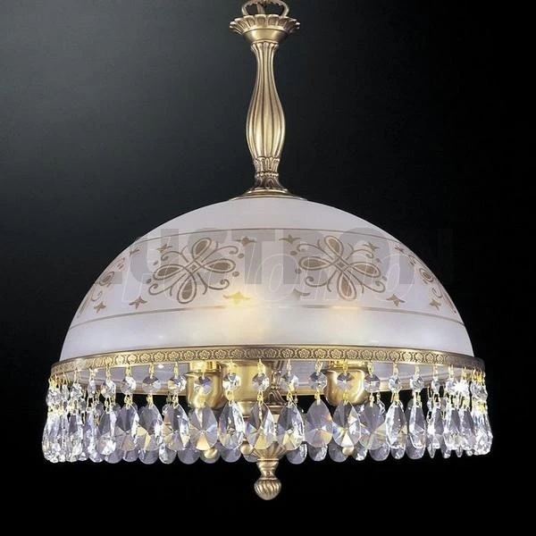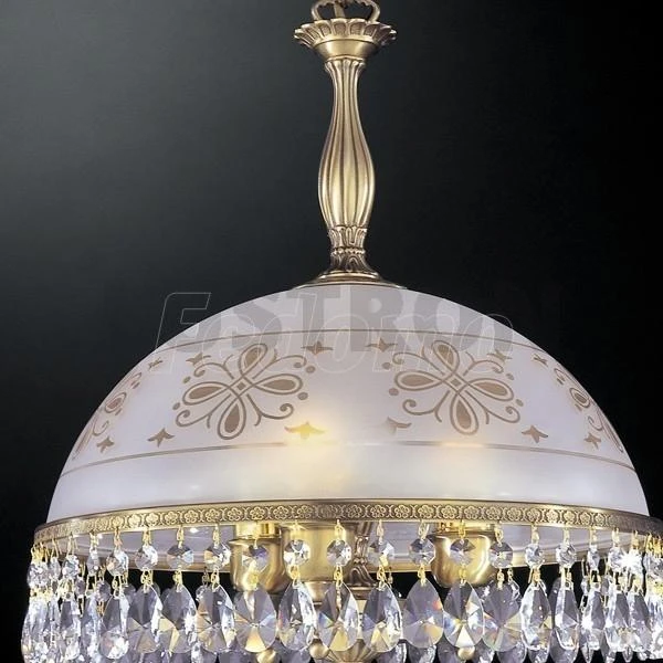 подойдет для классических и современных интерьеров объединяя богатство и тонкость итальянского вкуса. Плафон декорирован золотистым рисунком с шикарными хрустальными подвесками, материал основания латунь отличного качества.