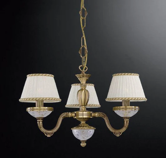 Люстра подвесная L 6402/3 из серии 6402 от компании Reccagni Angelo устанавливается на металлический крюк. Классическая люстра прекрасно подойдет в качестве источника основного света для гостиной, спальни, кабинета, оформленных в стиле ампир. Основной цвет модели - белый, материал арматуры - металл. Люстра имеет 3 абажура со свечением вверх, материал изготовления - ткань. Модель оснащена цоколем E14 (3xE14), имеет 3 лампочки с общей мощностью 180W и напряжением 220V. Светильник поддерживает подключение диммера. Габариты: высота - 340 мм, диаметр - 520 мм. Лампочки в комплект не входят. Лучшая цена и условия доставки на Reccagni Angelo L 6402/3 в интернет-магазине Fedomo.ru.
