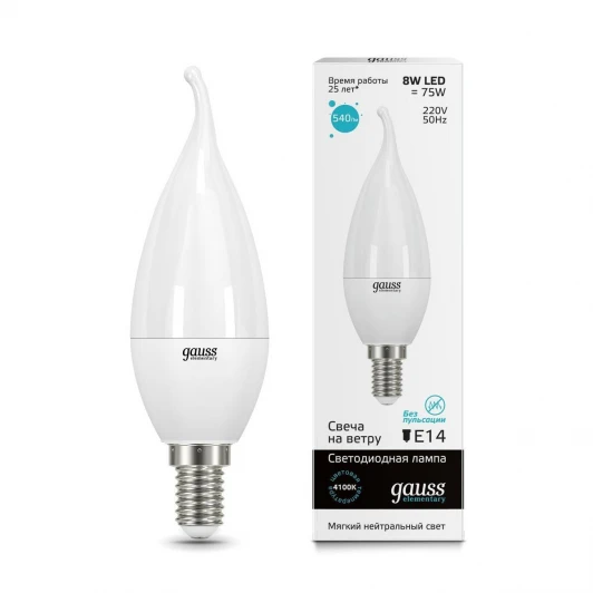 Лампочка светодиодная 34128 из серии Gauss Elementary от компании Gauss имеет нейтральное белое свечение и цветовую температуру 4100K. Световой индекс изделия 540 lm, цоколь E14, мощность 8 Вт, напряжение 220V. Лампочка прослужит не менее 25000 часов. Лучшая цена и условия доставки на Gauss 34128 в интернет-магазине Fedomo.ru.