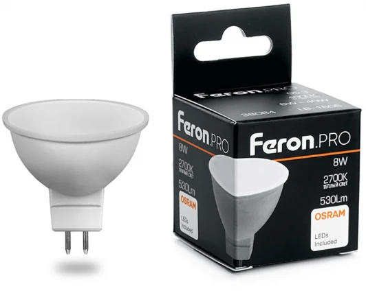 Лампочка рефлекторная светодиодная белая полусфера 38089 от китайского производителя Feron. Лампочка с цоколем G5.3 обладает мощностью 8W, цветовой температурой 2700К с теплым белым свечением и освещает площадь до 2 кв. м. Индекс цветопередачи 80Ra, световой поток 530 лм, угол рассеивания света 120 градусов. Питание от сети 220V. Срок службы составит до 30000 ч. Длина — 52 мм, ширина — 50 мм. Заказывайте Feron 38089 онлайн по низкой цене с гибкими условиями доставки на Fedomo.ru!