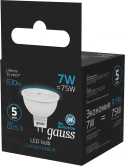Лампочка светодиодная белая рефлекторная 101505307 от российского бренда Gauss. Лампочка с цоколем GU5.3 с мощностью 7W освещает площадь до 1 кв. м., имеет цветовую температуру 6500К с холодным белым оттенком свечения. Индекс цветопередачи 90-100Ra, световой поток 630 lm, угол рассеивания света 120 градусов. Напряжение питания 220V. Срок службы составит до 35000 ч. Габариты: длина — 45 мм, диаметр — 50 мм. Заказывайте Gauss 101505307 онлайн по низкой цене с гибкими условиями доставки на Fedomo.ru!