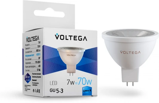 Лампочка светодиодная 7063 из серии Voltega Simple от компании Voltega имеет белую колбу формы полусфера, нейтральное белое свечение и цветовую температуру 4000K. Световой индекс изделия 570 lm, цоколь GU5.3, мощность 7 Вт, напряжение 220V. Лучшая цена и условия доставки на Voltega 7063 в интернет-магазине Fedomo.ru.