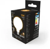 Лампочка светодиодная филаментная белый шар 187202110 от российского бренда Gauss. Лампочка с цоколем E27 с мощностью 10W освещает площадь до 2 кв. м., имеет цветовую температуру 3000К с теплым белым оттенком свечения. Индекс цветопередачи 90-100Ra, световой поток 1070 lm, угол рассеивания света 360 градусов. Напряжение питания 220V. Срок службы составит до 35000 ч. Габариты: длина — 175 мм, диаметр — 125 мм. Заказывайте Gauss 187202110 онлайн по низкой цене с гибкими условиями доставки на Fedomo.ru!
