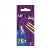 Лампочка светодиодная филаментная 32482 9 от китайского бренда REV с цоколем E14. Цвет свечения – теплый, цветовая температура 2700 К, индекс цветопередачи >80 Ra, световой поток 695 lm, угол рассеивания света 360 градусов, срок службы составит не менее 30000 часов. Питание от сети 220 В. Степень защиты от влаги и пыли IP20. Заказывайте REV 32482 9 онлайн по низкой цене с гибкими условиями доставки на Fedomo.ru!