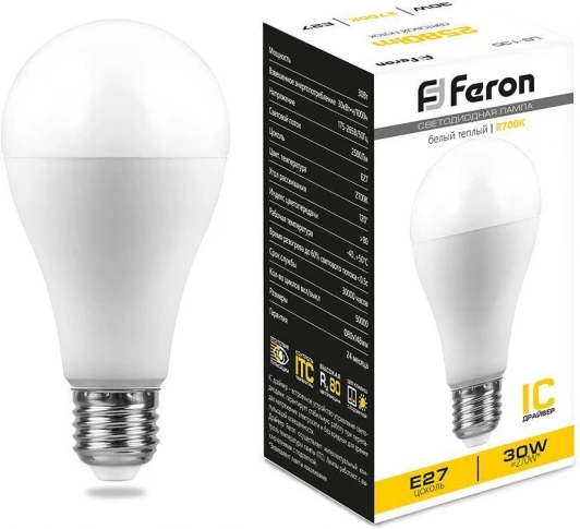 Лампочка светодиодная шар LB-130 38194 от российской фабрики Feron. Лампочка с цоколем 1xE27 обладает мощностью 30W, цветовой температурой 2700К. Световой поток 2580 Lm. Питание от сети 220V. Габариты: высота — 148 мм, диаметр — 80 мм. Заказывайте Feron 38194 онлайн по низкой цене с гибкими условиями доставки на Fedomo.ru!