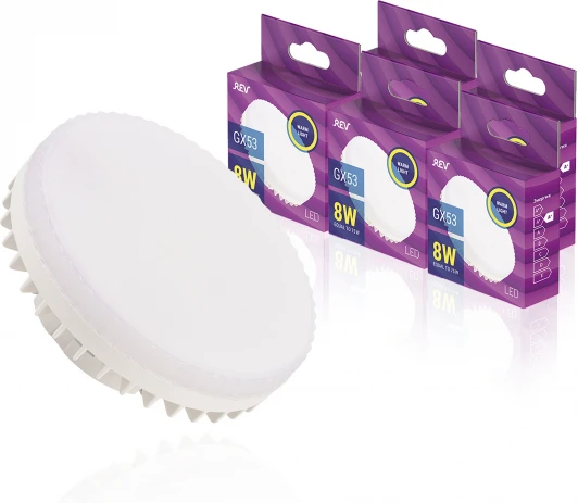 Лампочка светодиодная 62064 2 от китайского бренда REV с цоколем GX53, цветовая температура 3000 К, индекс цветопередачи >80 Ra, световой поток 640 lm, угол рассеивания света 120 градусов, срок службы составит не менее 30000 часов. Питание от сети 220 В. Степень защиты от влаги и пыли IP20. Габариты: высота 7.5 мм. Заказывайте REV 62064 2 онлайн по низкой цене с гибкими условиями доставки на Fedomo.ru!