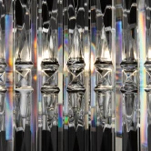 Массивные грани кристаллов – акцентный элемент в оформлении серии Facet, позволяющий ей стать главным объектом внимания в современной и классической обстановке. Прозрачный хрустальный декор отличается крупной архитектурной огранкой – это подчеркивает смелый и динамичный образ модели. Металлическая арматура представлена в двух оттенках: хром и золото, что позволяет подобрать светильник, идеально гармонирующий с окружающим пространством. В серию входит 2 потолочные люстры различного диаметра (на 4 и 6 ламп), а также бра накладного монтажа. Все модели снабжены цоколем для ламп Е14.
