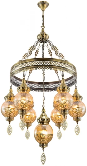 Подвесная люстра Каир CL419163 от итальянского производителя Citilux исполнена в цветах бронза и шампань из металла. Модель имеет 7 плафонов из стекла и металла и подходит для размещения на потолке в гостиной, кафе, спальне, кухне, кабинете в восточном стиле. Лампочки с цоколем 7xE27 оснащены мощностью 525W и освещают площадь до 21 кв. м. Световой поток 5800 lm. Питание от сети 220V. Дополнительные опции: регулировка по высоте. Монтаж производится на металлический крюк. Габариты: высота — 1000 мм, диаметр — 560 мм. Заказывайте Citilux Каир CL419163 онлайн по низкой цене с гибкими условиями доставки на Fedomo.ru!