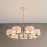 Современная подвесная люстра Citilux Тильда CL469170 для стильных интерьеров, оформленных в светлых тонах. Корпус светильника металлический, цвет белый матовый с декоративными хромированными элементами. Абажуры цилиндрической формы, изготовлены из текстурной ткани на подложке из оптического полимера. В изделии используются лампы с цоколем Е27, максимальной мощностью для ламп накаливания 75Вт. Светодиодные лампы можно применять более яркие. Подходит для всех типов потолков, в том числе натяжных. Тип крепления – планка. Диаметр 76см, высота регулируется в диапазоне 30-120см,