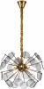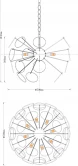 Каркас золотого цвета в форме шара декорирован вставками из дымчатого стекла, которые придают люстре объемность и создают приглушенное освещение. В качестве источника света подойдут лампы с цоколем G9. Люстра крепится к потолку с помощью планки и удерживается цепью, которую при необходимости можно отрегулировать по высоте. Тканевый кожух поверх цепи снимается.