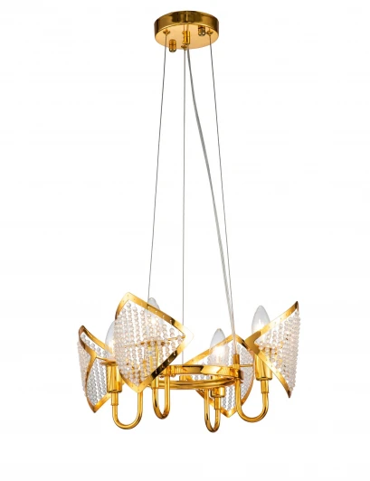 Компактная подвесная люстра в современном стиле. Металлический каркас цвета глянцевого золота украшен бусинами из хрусталя, которые позволяют создать красивую игру света при освещении. Люстра поможет создать качественное освещение в доме, а яркий дизайн дополнит любой интерьер. Общая высота люстры составляет 120 см, при необходимости ее можно уменьшить с помощью подвесных тросов при монтаже.