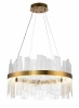 Современная подвесная люстра из серии Lima. Каркас золотого цвета дополнен вставками из матового стекла с эффектом льда. Простой и лаконичный дизайн люстры дополнит интерьер комнаты, а встроенные светодиодные ленты общей мощностью 60 Вт помогут создать качественное освещение. Общая высота люстры составляет 130 см, при монтаже с помощью подвесных тросов можно отрегулировать высоту по необходимости.