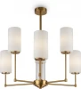 Выразительную силу простых художественных решений демонстрирует серия Agnes: дизайнеры отказались от стандартного одноуровневого расположения плафонов, разместив их на разной высоте. Всего одна деталь меняет настроение модели, а элегантная классика обретает современные черты. Арматура светильника выполнена из металла и окрашена в цвет латуни и хрома. Лаконичный силуэт дополняется стеклянным декором центрального стержня: рельефная фактура оттеняет гладкую поверхность рожков. Белые плафоны из полупрозрачного стекла мягко приглушают световой поток, делая его уютным и обволакивающим. Оригинальное дизайнерское решение позволяет использовать модель как в классических, так и в современных интерьерах с настроением ар-деко, строгой неоклассики или бунтарской эклектики. Люстры на 6 и 8 плафонов и бра – готовый ансамбль для комплексного освещения пространства в единой стилистике.