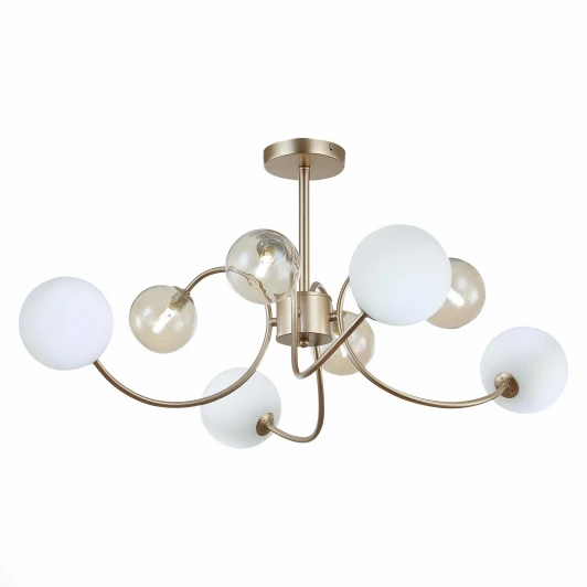Потолочная люстра на штанге в форме шара Formae SLE220922-08 от итальянского производителя Evoluce исполнена в янтарном цвете из металла. Модель имеет 8 плафонов из стекла и подходит для размещения на потолке в гостиной, спальне, кухне, кабинете в стиле модерн. Лампочки с цоколем 8xG9 оснащены мощностью 40W, имеют цветовую температуру 4000К и освещают площадь до 14 кв. м. Питание от сети 220V. Монтаж производится на пластину. Габариты: высота — 380 мм, диаметр — 790 мм. Заказывайте Evoluce Formae SLE220922-08 онлайн по низкой цене с гибкими условиями доставки на Fedomo.ru!