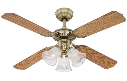 Потолочная люстра с вентилятором Westinghouse Princess Trio Brass 78265WES произведена американским брендом Westinghouse и исполнена в цвете золота из металла. Модель подходит для размещения гостиной, кабинета, кафе, холла, кухни, офиса, прихожей и коридора в классическом стиле. Светильник имеет 3 плафона. Лампочки с цоколем 3xE14 обладают общей мощностью 180 Вт. Установка производится на монтажную пластину. Допускается подключение диммера. Высота - 430 мм, диаметр - 1050 мм. Заказывайте Westinghouse 78265WES онлайн по низкой цене с гибкими условиями доставки на Fedomo.ru!