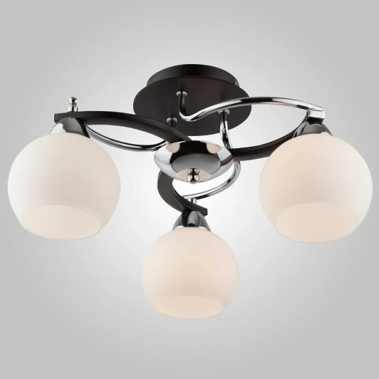 Люстра потолочная венге 9654/3 хром/венге из серии 9654 от компании Eurosvet устанавливается на монтажную пластину. Люстра прекрасно подойдет в качестве источника основного света для гостиной, спальни, кухни, кабинета, оформленных в стиле модерн. Основной цвет модели - белый, материал арматуры - металл. Люстра имеет 3 плафона со свечением вниз, материал изготовления - стекло. Модель оснащена цоколем E27, имеет 3 лампочки с общей мощностью 180W и напряжением 220V. Светильник поддерживает подключение диммера. Габариты: диаметр - 420 мм. Лучшая цена и условия доставки на Eurosvet 9654/3 хром/венге в интернет-магазине Fedomo.ru.