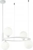 Арматура из металла в трех оттенках: белый, черный, латунь. Плафоны-сферы закреплены на округлом металлическом каркасе. Материал плафонов — выдувное стекло, цвет — белый. Высота подвесных моделей регулируется.