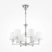 Люстра подвесная MOD018PL-06CH из серии Riverside от компании Maytoni регулируется по высоте и устанавливается на металлический крюк. Классическая люстра прекрасно подойдет в качестве источника основного света для гостиной, спальни, кухни, кабинета. Основной цвет модели - белый, материал арматуры - металл, стекло. Люстра имеет 6 абажуров со свечением вверх, материал изготовления - ткань, ПВХ. Модель оснащена цоколем E14 (6xE14), имеет 6 лампочек с общей мощностью 240W и напряжением 220V. Светильник поддерживает подключение диммера. Габариты: высота - 480 мм, диаметр - 660 мм, длина подвеса - 900 мм. Лампочки в комплект не входят. Лучшая цена и условия доставки на Maytoni MOD018PL-06CH в интернет-магазине Fedomo.ru.