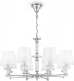 Люстра подвесная MOD018PL-08CH из серии Riverside от компании Maytoni регулируется по высоте и устанавливается на металлический крюк. Классическая люстра прекрасно подойдет в качестве источника основного света для гостиной, спальни, кухни, кабинета. Основной цвет модели - белый, материал арматуры - металл, стекло. Люстра имеет 8 абажуров со свечением вверх, материал изготовления - ткань, ПВХ. Модель оснащена цоколем E14 (8xE14), имеет 8 лампочек с общей мощностью 320W и напряжением 220V. Светильник поддерживает подключение диммера. Габариты: высота - 480 мм, диаметр - 770 мм, длина подвеса - 900 мм. Лампочки в комплект не входят. Лучшая цена и условия доставки на Maytoni MOD018PL-08CH в интернет-магазине Fedomo.ru.