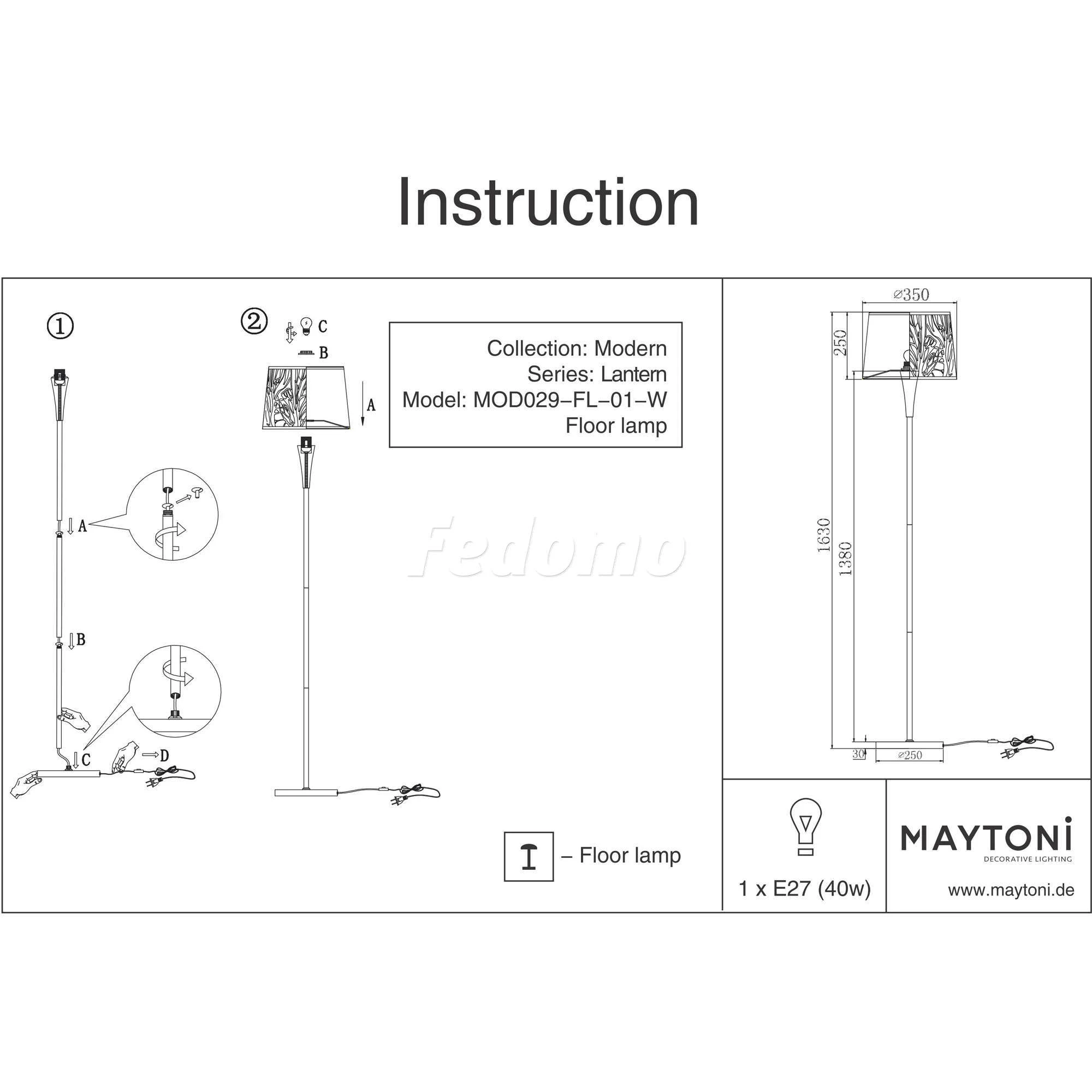 Торшер MOD029-FL-01-W из серии Lantern от компании Maytoni будет удачно смотреться на полу в гостиной, спальне, оформленных в стиле модерн. Торшер имеет 1 абажур и 1 лампочку с цоколем E27, мощностью 40W и напряжением 220V. Модель устанавливается на основание, есть возможность подключения диммера. Основной материал и цвет арматуры - белый металл. Габариты изделия: высота - 1630 мм. Лампочки в комплект не входят. Лучшая цена и условия доставки на Maytoni MOD029-FL-01-W в интернет-магазине Fedomo.ru.