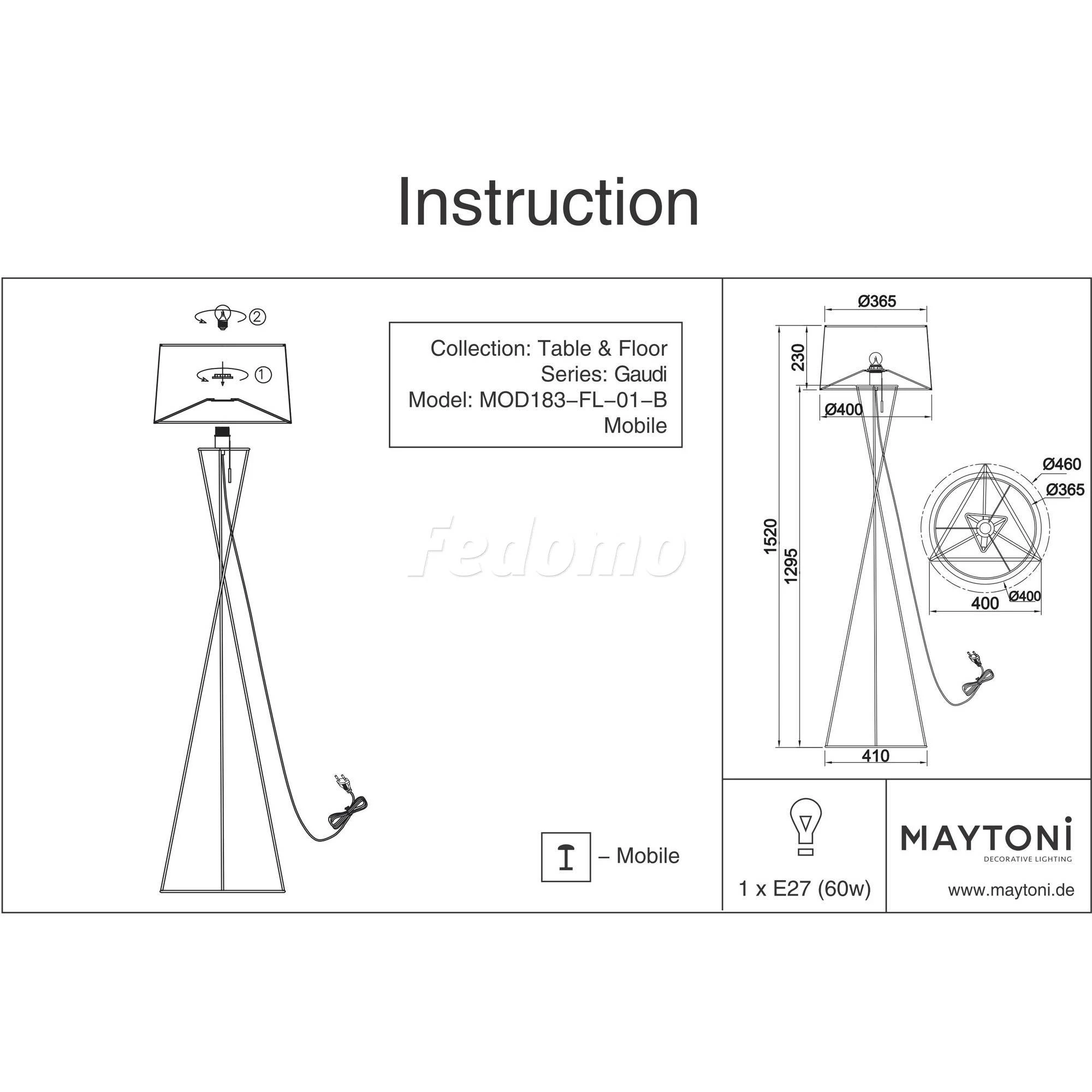 Торшер MOD183-FL-01-B из серии Gaudi от компании Maytoni будет удачно смотреться на полу в гостиной, оформленной в современном стиле. Торшер имеет 1 абажур и 1 лампочку с цоколем E27, мощностью 60W и напряжением 220V. Модель устанавливается на основание, есть возможность подключения диммера. Основной материал и цвет арматуры - черный металл, материал абажура - пластик. Габариты изделия: высота - 1520 мм. Лампочки в комплект не входят. Лучшая цена и условия доставки на Maytoni MOD183-FL-01-B в интернет-магазине Fedomo.ru.